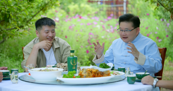 除了最普遍的药用价值外,为了能让枸杞子走上餐桌,中宁当地人有他们独特的挑选方法,他们通常选取色泽暗红、颗粒度饱满、没有黑头的枸杞子作为食材,可为主角,也可为配角。不仅创造出了“枸杞子炖羊肉”这一中宁人民最为喜爱的经典美食,还研发出了枸杞芽菜、枸杞汁浇烧的黄河大鲤鱼等极具风情的特色美食,制成了当地独有的“枸杞宴”。连主持过多档美食节目、见识过中西各色美食的曹可凡都不由得连连称奇,甚至还建议张雪峰将枸杞汁带回苏州,让苏州人也尝尝枸杞汁做的松鼠鳜鱼。 由草本生长出社会议题 输出情绪价值实现破圈 枸杞子从种植到丰收,全靠“熬得住”三个字。枸杞树需要历经日复一日的风吹日晒,不断从土壤中汲取营养,种植农户则需要不断投入人力物力,灌溉水肥,整形修剪,就为了等待第三年枸杞子能达到品质最佳的状态。