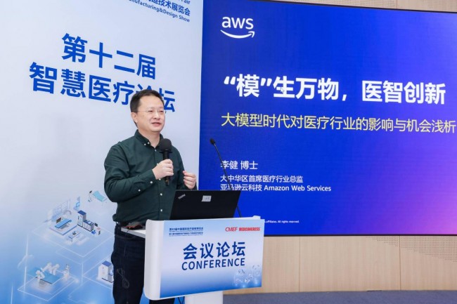 “创新科技,智领未来”,2023年10月28日-31日,第88届中国国际医疗器械博览会在深圳国际会展中心举行。作为CMEF上最具影响力的品牌活动之一,由机械工业出版社和国药励展共同举办的第十二届智慧医疗论坛于10月29日成功举办。为助力医疗领域的研究与传播,共同为智慧医疗建设贡献力量,本次活动邀请了十一位嘉宾来现场分享,参与医疗科技创新与产业发展趋势的讨论。 参与本次论坛的嘉宾包括:亚马逊云科技大中华区医疗与生命科学行业总监黄庆春、科技部中国科技产业化促进会信息技术专委会主任康健、北京九都佳德科技开发公司CEO隋斌、君联资本执行董事戚飞、首都医科大学附属北京胸科医院副院长李亮、动脉网蛋壳研究院院长姜天骄、亚马逊科技大中华区首席医疗行业总监李健、微基因公司董事长陈钢、长海资本创始人王可书、北京航空航天大学生物与医学工程学院研究员博导帅梅、联想之星董事王一。 本次活动分上、下午共两个论坛,嘉宾们围绕主题“医疗科技创新与投资”和“医疗产业发展趋势与机会”展开了深入的探讨。 黄庆春重点介绍了亚马逊的创新文化和创新团队运营模式。他提到亚马逊鼓励员工针对用户痛点进行创新,旨在满足用户需求、提升用户体验、提高生活和工作效率,在此基础上积极推动创意的产生和落地。