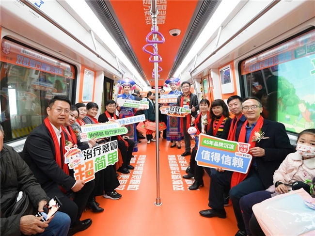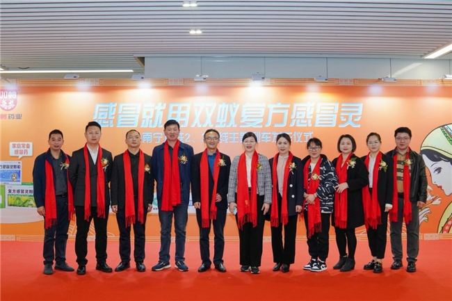 2月4日,由广西双蚁药业有限公司(以下简称“双蚁药业”)主办,广西乐达传媒有限公司(以下简称“乐达传媒”)承办的“感冒就用双蚁复方感冒灵”南宁地铁2、3号线主题列车发车仪式在南宁地铁3号线金湖广场站站厅隆重举行。“感冒就用双蚁复方感冒灵”南宁地铁主题专列的亮相,让更多人了解和认识广西特色壮成药企业和特色药品,从而推动整个行业的高质量发展。