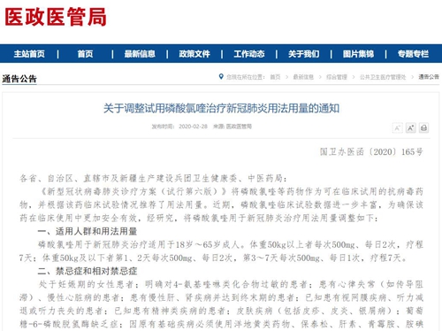 国家卫健委调整磷酸氯喹用法用量 适用于新冠肺炎18至65岁患者 人民网北京2月29日电(董童)国家卫生健康委于28日在官网发布了《关于调整试用磷酸氯喹治疗新冠肺炎用法用量的通知》(以下简称“通知”)提出,新型冠状病毒肺炎诊疗方案(试行第六版)》将磷酸氯喹等药物作为可在临床试用的抗病毒药物,并根据该药物临床试验情况推荐了用法用量。 ![]() 国家卫生健康委表示,近期,磷酸氯喹临床试验数据进一步丰富,为确保该药在临床使用中更加安全有效,组织专家对磷酸氯喹用于新冠肺炎治疗用法用量进行了调整和细化。一是强调磷酸氯喹用于新冠肺炎治疗适用于18~65岁的患者,并根据患者体重差异化调整磷酸氯喹的用法用量。二是明确使用禁忌症和相对禁忌症。三是提出使用过程中的注意事项。 通知标明了适用人群和用法用量:磷酸氯喹用于新冠肺炎治疗适用于18岁~65岁成人。体重50kg以上者每次500mg、每日2次,疗程7天;体重50kg及以下者第1、2天每次500mg、每日2次,第3~7天每次500mg、每日1次,疗程7天。 通知强调,在禁忌症和相对禁忌症方面,包括处于妊娠期的女性患者;明确对4-氨基喹啉类化合物过敏的患者;患有心律失常(如传导阻滞)、慢性心脏病的患者;患有慢性肝、肾疾病并达到终末期的患者;已知患有视网膜疾病、听力减退或听力丧失的患者;已知患有精神类疾病的患者;皮肤疾病(包括皮疹、皮炎、银屑病);葡萄糖-6-磷酸脱氢酶缺乏症;因原有基础疾病必须使用洋地黄类药物、保泰松、肝素、青霉胺、胺碘酮、卞普地尔、多潘立酮、氟哌利多、氟哌啶醇、阿奇霉素、阿司咪唑、红霉素、克拉霉素、泊沙康唑、美沙酮、普鲁卡因胺、氢氯噻嗪、斯帕沙星、左氧氟沙星、莫西沙星、西沙比利、吲达帕胺、氯丙嗪、链霉素、青霉胺、氯化铵、昂丹司琼、阿扑吗啡、奥曲肽单胺氧化酶抑制剂、氟羟强的松龙等药物的患者。 此外,通知还标明了注意事项。使用磷酸氯喹治疗新冠肺炎的患者,用药前必须心电图检查正常,禁止同时使用喹诺酮类、大环内酯类抗生素及其他可能导致QT间期延长的药物。同时,保证患者体内电解质水平(钾、钠、氯)和血糖、肝肾功能正常;应当注意与其他药物的相互作用,不建议同时应用包括磷酸氯喹在内的3种及以上抗病毒药物;密切关注用药后的不良反应,出现不可耐受的毒副作用时应当停止使用;严格按照《药品不良反应报告和监测管理办法》要求,做好不良反应监测和报告工作,切实保证用药安全。 (责任编辑:Doctor001) |