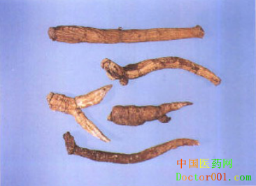 【标题】 华山参 【拼音】 Huashanshen 【概述】 为茄科植物漏斗泡囊草Physochlaina infundibularis Kuang的根。产于山西、陕西、河南。主产于秦岭华山。早春或初夏采收,除去芦头及细根,洗净,晒干。 【性味归经】 甘、微苦,温。有毒。归肺经。 【功效】 温肺祛痰,止咳平喘。 【应用】 体虚痰喘,寒咳。本品性温温肺散寒,又能化痰,临床多用于长年久咳,可短期见效,而对哮喘症有特效。常与麦冬、甘草等配用。 此外,本品还用治虚寒腹泻、失眠。 【注意】 不宜多服、久服,以免中毒。青光眼患者禁用。孕妇慎用。前列腺极度肥大者慎用。 【用法用量】 煎服,0.1~0.2g。或制成喷雾剂吸入,也可制成片剂。 【临床研究】 1.化学成分:根中有效成分为生物碱,其中脂溶性生物碱有东莨菪素(莨菪亭,东莨菪内酯),莨菪碱,东莨菪碱,天仙子碱及山莨菪碱等。水溶性生物碱以胆碱为主。其所含东莨菪内酯、东莨菪苷是治疗气管炎的有效成分。此外,含氨基酸、多糖类、还原糖、甾醇类及淀粉等。 2.药理作用:本品具有镇咳、祛痰、平喘作用。本品提取的莨菪亭能增加酚红的排出,降低痰液粘性和痰内嗜中性细胞数,提示有祛痰作用。其粉剂和粗提物(热参总生物碱)亦有平喘作用。 3.不良反应:误食过量易致中毒。中毒表现:轻者出现口干,口麻,头晕,烦躁,视力模糊,咽痛,牙痛,面色潮红,重者语言不清,躁动谵语,瞳孔散大,牙关紧闭,口唇干裂,口腔出血,四肢肌肉张力增强,心率加快,昏迷,抽搐等。华山参中毒后,除一般抢救处理外,可使用拮抗剂,(与救治阿托品中毒相同)。中药治疗取甘草30g,绿豆30g水煎服。亦可服用生姜水。 【图片】 华山参 ![]() 漏斗包囊草 ![]() 药材华山参 ![]() 药材华山参横切面 ![]() 药材华山参横切面(偏振光下) ![]() (责任编辑:Doctor001) |
