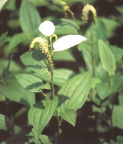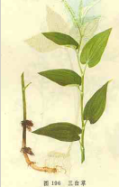 【标题】 三白草 【拼音】 Sān Bái Cǎo 【英文】 Chinese Lizardtail Rhiaomeor Herb, Herb of Purple Chinese Lizardtail 【拉丁文】 Saururus chinensis(Lour.) Baill.[Spathium chinensis Lour.] 【异名】 水木通、五路白、白水鸡、白花照水莲、天性草、田三白、白黄脚、白面姑、三点白、白叶莲。 【性味】 苦;辛;寒 【归经】 肺;脾;胃;大肠经 【功效】 清热利水;解毒消肿。主热淋;血淋;水肿;脚气;黄疸;痢疾;带下;痈肿疮毒;湿疹;蛇咬伤 【药用】 为三白草科植物三白草的地上部分。 【注意】 脾胃虚寒者忌服 【用法用量】 内服:煎汤,10-30g;鲜品倍量。外用:鲜品适量,捣烂外敷,或捣汁饮。 【形态】 三白草阶 多年生湿生草本,高达1m。地下茎有须状小根。茎直立,粗状,无毛。单叶互生,纸质,密生腺点;叶柄长1-3cm,基部与托叶合生成鞘状,略抱茎;叶片阔卵状披针形,长5-14cm,宽3-7cm,先端尖或渐尖,基部心形,略成耳状或稍偏斜,全缘,两面无毛;花序下的2-3片叶常于夏初变为白色,呈花瓣状。总状花序生于茎上端与叶对生,长10-20cm,白色;总状花梗及花柄被毛;苞片近匙形或倒披针形,长约2mm;花两性,无共被;雄蕊6枚,花药长圆形,略短于花丝;雌蕊1,由4心皮组成,子房圆形,柱头4,向外反曲。蒴果近球形,直径约3cmm,表面多疣状凹起,熟后顶端开裂。种子多数,圆形。花期5-8月,果期6-9月。 【生态环境】 生长在沟边、池塘边等近水处。 【产地】 分布于河北、河南、山东和长江流域及其以南各地。 【栽培】 生物学特性 喜温湿润气候,耐荫,凡塘边、沟边、溪边等浅水处或低洼地均可栽培。发芽需低温,在7.6-12.4℃有光照条件下,经过34d,发芽率约72%。种子千粒重0.75g。 栽培技术 用种子繁殖。秋季果实开始开裂,开支未脱落但充分成熟时采下果实,搓出种子,除去杂质,开浅沟条播,覆土1-1.5cm。分株繁殖,4月份挖取地下茎,切成小段,每段具有2-3个芽眼,按行、株距各30cm栽下,每穴栽1株。田地间管理生长期间,注意浇水,保持土壤湿润,并注意清除杂草。 【化学成分】 三白草叶含槲皮素(quercetin),槲皮甙(quercitrin),异槲皮甙(isoquercitrin),槲皮素(quercetin),槲皮甙(querctin-3-L-arabinoside),金丝桃甙(hyperin)及芸香甙(rutin)。茎、叶均含可水解鞣质。全草含水量挥发油,其主成分为甲基壬基甲酮(methyl-n-nonylketone)。 【理化鉴别】 (1)取本品粉末2g,石油醚10ml,浸渍过夜,滤过,滤液置蒸发器内,自然挥干革命,有特异的芳香气;加1%香草醛硫酸液,即显红色,放置后变为蓝紫色。(2)薄层色谱取水蒸馏所得挥发油,用乙醚稀释后作供试品溶液。另取甲基正壬基酮少量用乙醚溶解作对照液。供试品及对照品分别占于同一硅胶G板上,以石油醚-乙酸乙酯(9:1)展开,喷以磷钼酸(10%乙醇溶液),110℃加热10min,斑点显蓝色,再喷以2,4-二硝苯肼显色,与甲基正壬基酮相对应的斑点显黄色。 【药理作用】 1.50%煎剂对金黄色葡萄球菌、伤寒杆菌有抑制作用。 2.本品所含萹蓄甙:v0.5mg/kg,对麻醉犬有利用尿作用,增加剂量时作用更显着。对大鼠,不论ig或sc,34mg/kg即产生显着的利尿作用,强度不如氨茶碱,但其毒性仅为氨茶碱的1/4。 3.本品叶中所含金丝桃甙具明显的抗炎作用,大鼠植入羊毛球后,每天20mg/kgip共7d,能显着抑发炎过程,还有较强的止咳作用和抑制眼醛糖还原酶的作用,可能对预防糖尿病性白内障有益。 【采收加工】 全年均可采,以夏秋季为宜,收取地上部分,洗净,晒干。 【炮制】 本品洗净、阴干、切段、备用 【性状】 性状鉴别 本品茎圆柱形,有4条纵沟,1条较宽;断面黄色,纤维性,中空。叶多皱缩互生,展平后叶片卵形或卵形披针状,长4-15cm,宽2-10cm;先端尖,基部心形,全缘,基出脉5条;叶柄较长,有纵皱纹。有时可见总状花序或果序,棕褐色。蒴果近球形。气微,味淡。以叶多、灰绿色或棕绿色者为佳。显微鉴别出 叶表面观:上、下表皮细胞胞略成多角形,角质纹理明显;表皮细胞间有油细胞散在,圆形,直径32--44μm,内含黄色油滴。下表皮气孔为不定式。另少数多细胞腺毛,由2-3细胞组成,长40-70μm,基部直径12-16μm。横切面可见上表皮细胞下有1列方形或切向延长的棕色细胞。 【中毒处理】 萹蓄甙小鼠ipLD50为1.173g/kg小鼠ip致死量后,多于10-20min发生阵挛性惊厥致使呼吸停止而死亡。金丝桃甙对小鼠ip的LD50为0.5g/kg。 【参考文献】 1.《唐本草》:主水肿,脚气,利大小便,消痰破癖,除积聚,消疔肿。2.《本草拾遗》:捣绞汁服,令人吐逆,除胸膈热痰,亦主疟及小儿痞满。3.《植物名实图考》:治筋骨及妇人调经多用之。4.《岭南采药录》:治淋浊,利小便,消热毒。5.《广西中药志》:治妇女白带及痧气。6.《本草推陈》:治火淋,虚淋,黄疸。7.《湖南药物志》:治痢疾,蛇咬伤。 【图片】 三白草 ![]() 三白草《本草纲目》 ![]() 药材三白草 ![]() (责任编辑:Doctor001) |
