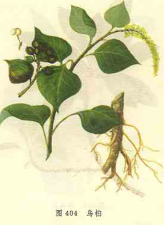 【标题】 乌桕 【拼音】 Wū Jiù 【异名】 桊子树、桕树、木蜡树、木油树、木梓树、虹树、蜡烛树 【性味】 苦,微温。有小毒。 【归经】 入肺、脾、肾、大肠经。 【功效】 杀虫,解毒,利尿,通便。用于血吸虫病,肝硬化腹水,大小便不利,毒蛇咬伤;外用治疔疮,鸡眼,乳腺炎,跌打损伤,湿疹,皮炎。 【药用】 本品为大戟科植物乌桕属植物乌桕Sapium sebiferum (L.)Roxb.,以根皮、树皮、叶入药。根皮及树皮四季可采,切片晒干;叶多鲜用。 【注意】 副作用为呕吐较剧,溃疡病患者忌服。 【用法用量】 根皮1~3钱;叶3~5钱;外用适量,鲜叶捣烂敷患处,或煎水洗。 【图片】 乌桕 ![]() (责任编辑:Doctor001) |