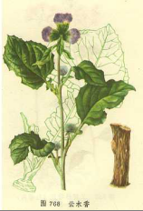 【标题】 云木香 【异名】 广木香、木香 【性味】 辛、苦,温。 【功效】 行气止痛,温中和胃。用于胸腹胀痛,呕吐,泄泻,痢疾里急后重。 【药用】 为菊科云木香属植物云木香Aucklandia lappa Decne. [Saussurea lappa Clarke]的根。秋季至第二年春初采挖,除去茎叶泥土,切成短段,粗大者纵剖2~4块,晒干。 【用法用量】 0.5~3钱。 【形态】 多年生大草本,高达1米左右。主根粗壮,圆柱形,稍木质,外皮褐色,有稀疏侧根。茎有细纵棱,疏被短刺状毛。基生叶具长柄,叶片三角状卵形或长三角形。夏秋开花,头状花序2~3个簇生茎顶,花全为管状花,暗紫色。瘦果条形,有棱,上端生一轮黄色直立的羽状冠毛,果熟时脱落。 【图片】 云木香 ![]() (责任编辑:Doctor001) |