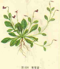 【标题】 冷毒草 【拼音】 Lěnɡ Dú Cǎo 【英文】 Herb of Creeping Violet 【拉丁文】 Viola pilosa Bl. [V.glaucescens Ouhem.;Vsepens Wall. Ex Ging.] 【异名】 地黄瓜、匍匐堇 【性味】 味苦,性寒 【功效】 清热解毒;消肿止痛。主疮疡肿毒;毒索咬伤;刀伤 【药用】 为堇菜科植物匍匐堇菜的全草。 【应用】 治蛇咬伤:冷毒草加茄子汁捣烂外敷患处。如有瞳孔散大或复视,在外敷的同时,可用伸筋草适量,煎水内服。 【用法用量】 内服:煎汤,9-15g。外用:适量,捣敷 【形态】 多年生草本。无地上茎或具极短的地上茎。根茎垂直或斜生,具明显的节间。匍匐枝纤细,延伸,有均匀散生的叶。叶近基生;叶柄与叶片近等长或下部者远大于叶征,密被倒生长硬毛,托叶大部分离生,披针形,先端长渐尖,边缘具有长或短的流苏状齿。叶片卵形或狭卵形,先端尾状渐尖或锐尖,基部弯缺狭而深,有白色硬毛,边缘有印齿,长2-6cm,宽1-3cm。花淡紫色或白色;花梗常高出于叶,疏生短毛或近无毛;萼片5,披针形,基部附属物长2-2.5mm,外面通常散生白色短毛;花瓣5,长圆状倒卵形,下方花瓣较短,距呈囊状.蒴果近球形,被柔毛或无毛.种子表面具点状突起,侧下方有明显的附属物.花期春季. 【生态环境】 生于海拔800-2000m的山地林下、草地或路边。 【产地】 分布于江西、西州、云南、西藏等地。 【采收加工】 春、夏季采收,洗净,鲜用。 【性状】 性状鉴别 多皱缩成团。湿润展开后,根茎较长,并有数条匍匐茎,叶柄较长,叶片民形,先端渐尖,基部深心形,边缘有印齿,叶片下部和叶柄具毛茸。气微,味微苦。 【附方】 治蛇咬伤 冷毒草全株加茄子法捣烂,外敷患处。如有瞳孔散大或复视,在外敷的同时,可用伸筋草适量,煎水内服。 【图片】 冷毒草 ![]() 匍匐堇 (责任编辑:Doctor001) |