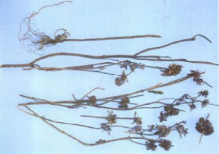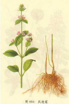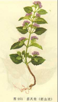 【标题】 断血流 【拼音】 Duàn Xuè Liú 【拉丁文】 Clinopodium polycephalum (Vaniolt)C.Y.Wu et Hsuan ex Hsu [Calamintha polycephalum Vaniot] 【异名】 大叶香薷、荫风轮、山藿香、瘦风轮、九层塔、野薄荷、田螺菜、蒙锄草、多头风轮菜 【性味】 味辛;苦;性凉 【功效】 清热解毒;凉血活血。主风热感冒;咳嗽;目赤肿痛;咽喉肿痛;白喉;腹痛痢疾;吐血;咯血;尿血;崩漏;外伤出血;肝炎;胆囊炎;窄肋;胃痛;关节疼痛;疮疡肿;毒蛇咬伤;湿疹;痔疮;跌打肿痛 【药用】 为唇形科植物灯笼草的全草。 【应用】 用于崩漏,尿血,鼻衄,牙龈出血,创伤出血;子宫肌瘤出血。 【用法用量】 内服:煎汤,15-30g;或捣汁。外用:适量,捣敷;或研末撒。 【形态】 多年生草本,高0.5-1m。茎基部有时匍匐生根,多分枝,被糙硬毛及腺毛。叶对生;叶柄长3-8mm;叶片卵形,长2-5cm,宽1.5-3.2cm,先端尖或钝,基部楔形,边缘具圆齿状牙,两面被糙硬毛。轮伞花序多花,圆球状,花时径达2cm,沿茎及分枝形成宽而多头的圆锥药序;苞片针状,被具节柔毛及腺毛;花萼管状,长约6mm,外面被具节柔毛及腺毛,上唇3齿,先端具尾尖,下唇2齿,先端芒尖;花冠紫红色,长约8mm,外面被微柔毛,上唇先端微缺,下唇3裂;雄蕊4,不露出,前对较长,花药2室,后对雄蕊短,花药小;子房4裂,花柱着生于子房底,柱头2裂。小坚果4,卵形,棕色。花期7-8月,果期8-9月。 【生态环境】 生于山坡、路旁、林下、灌丛或草地。 【产地】 分布于华东、西南及河北、陕西、甘肃、河南、湖北、湖南、广西等地。 【显微特征】 叶横切面及表面观特片均与“风轮菜”相似(参见“风轮菜”条),但非腺毛多呈节状,长64-1120μm,直径20-50μm。 【化学成分】 全草含风轮菜皂甙(clinopodiside)A[1]及薄公英赛-9,12,17-三烯3β,23-二醇(taraxer-9,12,17-triene-3β,23-di-ol)[2]等。 【理化鉴别】 (1)取本品粉末1g,加乙醇10ml,水浴加热15min,滤过。取滤液1ml置小试管中,加镁粉与盐酸数滴,溶液渐变橙红色。(检查黄酮类)(2)取上述醇浸液滴于滤纸片上,干后,干后在紫外光灯(254nm)下观察,呈蓝紫色荧光;喷以0.5%醋酸镁甲醇溶液,再置紫外光灯下观察,荧光变为天蓝色。(检查黄酮类)(3)浇层色谱 ①取本品粗粉1g,加乙醇15ml,回流提取30min,滤过。滤液浓缩至1ml,作供试品液;另取橙皮甙,香蜂草甙作对照品,分别点样于同一硅胶H-0.5% CMC薄层板上,以苯-醋酸乙酯-醋酸-乙醇(20:15:15:15)上层液展开,展距15cm,用1%氧氯化锆甲醇液显色,在紫外光灯(254nm)下观察,供试品色谱中,在与对照品色谱相应位置上,显相同颜色的荧光斑点。②取本品粉末1g,加甲醇10ml,置水浴上加热回流30min,滤过。滤液加于已处理好的中性氧化铝柱(100-120目,10g,内径10-15mm)上,用40%甲醇40ml洗脱,收集洗脱液,置水浴上蒸干,残潭用水30ml使溶解,用水饱和的正丁醇浴液提取2次,每次20ml,合并正丁醇液,用水洗涤2次,每次20ml,弃去水液,正丁醇液置水浴上蒸干,残潭加甲醇1ml使溶解,作供试品溶液;另取断血流皂甙乙醇液作对照品溶液。分别点样于同一用1%氢氧化钠制备的硅胶G薄层板上,以氯信-醋酸乙酯-甲醇-水(15:10:20:10)于10℃以下放置后的下层溶液为展开剂,展开,取出,晾干。喷以10%硫酸乙醇溶液,在110℃烘数分钟,供试品色谱中,在与对照品色谱相应位置上,显相同的紫蓝色斑点;再置紫外光灯(365nm)下检视,显相同的棕红色荧光斑点。 【药理作用】 1. 止血作用 断血流花粉1g或0.5g敷于家兔颈动脉、股动脉切口、肝脏及后肢皮肤、肌肉切割创面,显着缩短止血时间,作用强于云南白药。醇提物5.4g/kg给小鼠灌服,每日1次,连续5d,显着缩短断尾出血时间和毛细血管凝血时间,减少出血量[1]。断血流水浸膏、醇浸膏、粗皂甙可增加家兔、豚鼠离体血管条的收缩;与去甲肾上腺素相比,作用缓慢、温和而持久。醇浸膏作用最强;对子宫动脉条作用最明显。这种作用是直接兴奋血管平滑肌所致[2]。醇浸膏、水浸膏各20mg、粗皂甙12mg或醇提物20%水溶液均可使离体兔耳血管灌流量明显减少[1,2]。醇提物0.8%水溶液显着提高大鼠在体肾肘灌流压[1]。断血流药粉对狗股动脉、肝、脾创口也有止血作用。水抽提液、0.2%粗皂甙水溶液显着减少蟾蜍后肢血管灌流量。10%浸剂滴加于蛙肠系膜,可见动脉收缩,静脉扩张[3]。断血流粗皂苷给小鼠皮下注射相当于2mg(生药)/10g剂量,对鳞酸组胺所致毛细血管通透性增加有明显抑制作用[2]。对磷酸组胺所致毛细血管通透性增加有明显抑制作用[2]。0.5%断血流总皂甙10μl显着增加体外ADP诱导的大鼠血小板聚集。2%总皂甙以160mg/kg给小鼠灌服4d,显着增强ADP诱导的血小板柔集作用,并且比同属植物风轮菜(C. chinense)总皂甙作用强。4%总皂甙给小鼠灌服280mg/kg,连续4d,可极显着升产知浆、血小板内血栓烷a2代谢产物血栓烷B2含量,这可能是其促血小板聚集的主要机制,总皂甙对血浆Camp含量无明显影响[4]。 2.抑制免疫功能 断血流总皂甙75mg/kg,给小鼠腹腔注射,连续6d,发现大剂量组对胸腺、脾脏重量有抑制趋势;显着抑制碳粒廓清作用;显着升高小鼠血清IgG含量,同样剂量,给药3d,均可抑制小鼠腹腔巨噬细胞吞噬功能;给药5d,均不能影响小鼠溶血素抗体的形成,总皂甙150mg-kg给豚鼠腹腔注射,连续5d,可降代血清补体总量15]。 3.抗炎、抑菌作用 断血流总皂甙能抑制角叉菜胶引起的大鼠足肿胀,对抗组胺所致小鼠皮肤毛细血管通透性增加,兴奋肾上腺皮质功能[6]。温浸液在试管内对金黄色葡萄球菌、绿