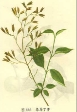 【标题】 暴马子 【拼音】 Bào Mǎ Zǐ 【拉丁文】 Syringa reticulata (Bl.) Hara var·a-murensis(Rupr.)Pringle[S.amurensis Rupr.;S.reticulata(Bl.) Hara var.Mandshurica (Maxim.) Hara] 【异名】 白丁香、棒棒木、荷花丁香 【性味】 苦;辛;性微温 【归经】 肺经 【功效】 宣肺化痰;止咳平喘;利水。主慢性支气管炎;哮喘;心脏性浮肿 【药用】 为木犀科植物暴马丁香的树皮。 【应用】 治疗慢性气管炎:实验表明,暴马子各部分以内皮作用最强,全皮次之,木心最差。故临床多采用其嫩皮,剂型有冲剂、粉剂、糖浆、丸剂,及暴马子皮提出物等。除单方制剂外,尚有复方制剂,但两者疗效相近。对单纯型慢性气管炎的疗效皆高于喘息型;祛痰和止咳的疗效皆高于平喘的疗效。暴马子镇咳作用虽明显,但不及可待因,祛痰作用与等剂量的桔仙比较,作用相似。制剂与用法。一、冲剂:取暴马子树皮洗净煎煮2次,合并2次滤液浓缩成膏加糖粉混匀,制成颗粒,60℃左右干燥。每次3g,日服3次。每日量相当暴马子树皮1两。二、糖浆:暴马丁香嫩皮3两,青萝卜3两,加水300ml,煎成60ml,加白糖适量即成。每次30ml,日服2次,10天为一疗程。三、丸剂:每丸3钱(含暴马丁香嫩皮粉5g,蜂宝5g),每次1丸,日服3次,10天一疗程。四、粉剂:暴马子皮水煎3次,每次1小时,浓缩喷雾干燥制成粉剂,每日5钱(10两制),分3次服,连服20天。五、暴马子皮提出物:从暴马子树皮(于5钱(10两制)中制取总提出物1.8g,每次0.6g,每日3次,饭后服,10天为一疗程。疗效:冲剂组治疗25例,近期控制2例,显效3例,好转14例,无效6例:糖浆组治256例,近期治愈33例,显效79例,好转114例无效30例;丸剂组治疗275例,近期治愈22例,显效61例,好转122例,无效70例;提取物组观察20例,2个疗程后近期治愈7例,显效4例,进步7例,无效2例。服暴马子皮提取物后一般在2-3天开始见效,6天效果明显,10天效果可达一定高度;10天后若继续治疗,有效病例可继续好转或趋向治愈,而无效者则仍然无效。副作用:少数病例服药后有口干、胃部不适、轻度腹泻等现象,停药后即消失。 【用法用量】 内服:煎汤,15-30g;或入丸、散。 【形态】 落叶小乔木,高4-10m。树皮紫灰褐色,具细裂纹。当年生枝绿色或略带紫晕,疏生皮孔。单叶对生;叶柄长1-2.5cm,无毛;叶片厚纸质,宽卵形、卵形至椭圆状卵形,或为长圆状披针形,长2.5-13cm,宽1-6cm,先端短尾尖至尾状渐尖或锐尖,基部常圆形。圆锥花序由1至多对着生于同一枝条上的侧芽抽生;花序轴具皮孔;花梗长0-2mm;花萼长1.5-2mm,萼齿钝、凸尖或截平;花冠白色,呈辐状,直径4-5mm,花冠管长约1.5mm,裂片卵形,长2-3mm,先端锐尖;花丝细长,雄蕊几乎为花冠裂片2倍长,花药黄色。蒴果长椭圆形,长1.5-2cm,先端常钝,或为锐尖、凸尖,光滑或具细小皮孔。花期6-7月,果期8-10月。 【生态环境】 生于海拔100-1200m的山坡灌丛、林缘或针阔叶混交林中,也有栽培。 【产地】 分布于黑龙江、吉林、辽宁、内蒙古、河北、陕西、宁夏、甘肃等地。 【显微特征】 皮部横切面:木柱层厚薄不一,木栓细胞梭形、长纺锤形,镶嵌状排列,细胞壁栓化和微木化。皮层稍宽,占横切面的1/3~1/4,有石细胞群散在,石细胞不规则形或是分枝状,长可达225μm。韧皮部宽广,石细胞成群或成带状排列,呈类圆形或椭圆形,壁厚,有明显的层纹、孔沟和壁孔,胞腔小;韧皮射线宽1~2列细胞,有的薄壁细胞中可见油滴。 粉末特征:皮部粉末呈灰黄色。石细胞单个或成群散在,大小不一,呈类圆形、长方形、梭形、分枝状等,直径60~255μm,有明显的层纹、孔沟和壁沟,胞腔小,少数的石细胞仅见壁孔。木栓细胞黄色或黄棕色,呈长纺锤形或梭形,细胞内含有油滴。韧皮射线细胞呈圆形,常排成2列;薄壁细胞长圆形,含有油滴。 【理化鉴别】 (1)取粗粉5g,置锥形瓶中,用水80ml,煎煮30min,滤过。滤液浓缩至约10ml,冷却,加乙醚10ml,用力振摇5min,吸取乙醚液3ml,加10%氢氧化钠溶液0.5ml,振摇,水层显棕色,加热后,色变深,呈棕红色。 (2)取本品粗粗10g,加乙醇适量,温浸数小时,滤过,回收乙醇至无醇味,残渣加水少量溶解,以10%盐酸调至pH1-2,用乙酸乙酯萃取3次,合并提取液,以水5~10ml洗涤,用无水硫酸钠脱水,浓缩至干,用乙醇适量溶解,供下述试验:①取滤液1ml,加三氯化铁乙醇溶液1-2滴,显绿色。②按上法制备样品并稀释成一定浓度,以乙醇作空白,照分光光度法《中华人民共和国药典》1995年版附录)测定,在282土1nm波长处有最大吸收峰。 【药理作用】 1.祛痰作用 小鼠或家兔灌服或腹腔注射全皮水煎液都有显着的祛痰作用(酚红法),作用强度与同剂量桔梗相当,切断迷走神经后,作用不受影响,直接从气管内给予小量药物亦可发生作用,因此可能系直接刺激呼吸道而发生作用。对于气管纤毛上皮运动则反有抑制。法痰的有效成分是酸酚及黄酮类物质。 2.平喘作用 豚鼠口服全皮水煎液有菲常明显的平喘作用(组织胺喷雾引喘法)。平喘的有效成分是萜类。小鼠灌服接近中毒量的全皮水煎液仍无止咳作用(氨水喷雾法)。树皮的乙醇提取物的中性部分有上咳作用。 3.对大鼠实验性慢性气管炎的作用灌服浸膏20g/kg,共20天,并无止咳作用,但能减轻Ⅲ级以下支气管上皮细胞的肥大增生,使各级支气管杯状细胞数量减少,气管腺体肥大增生减轻以及腺泡、导管粘液化数量减少,但对慢性炎症细胞浸润和淋巴组织增生无明显作用。 4.其他4.1. 抑菌作用 全皮及内皮水煎液对肺炎双球菌和流感杆菌有中度抑菌